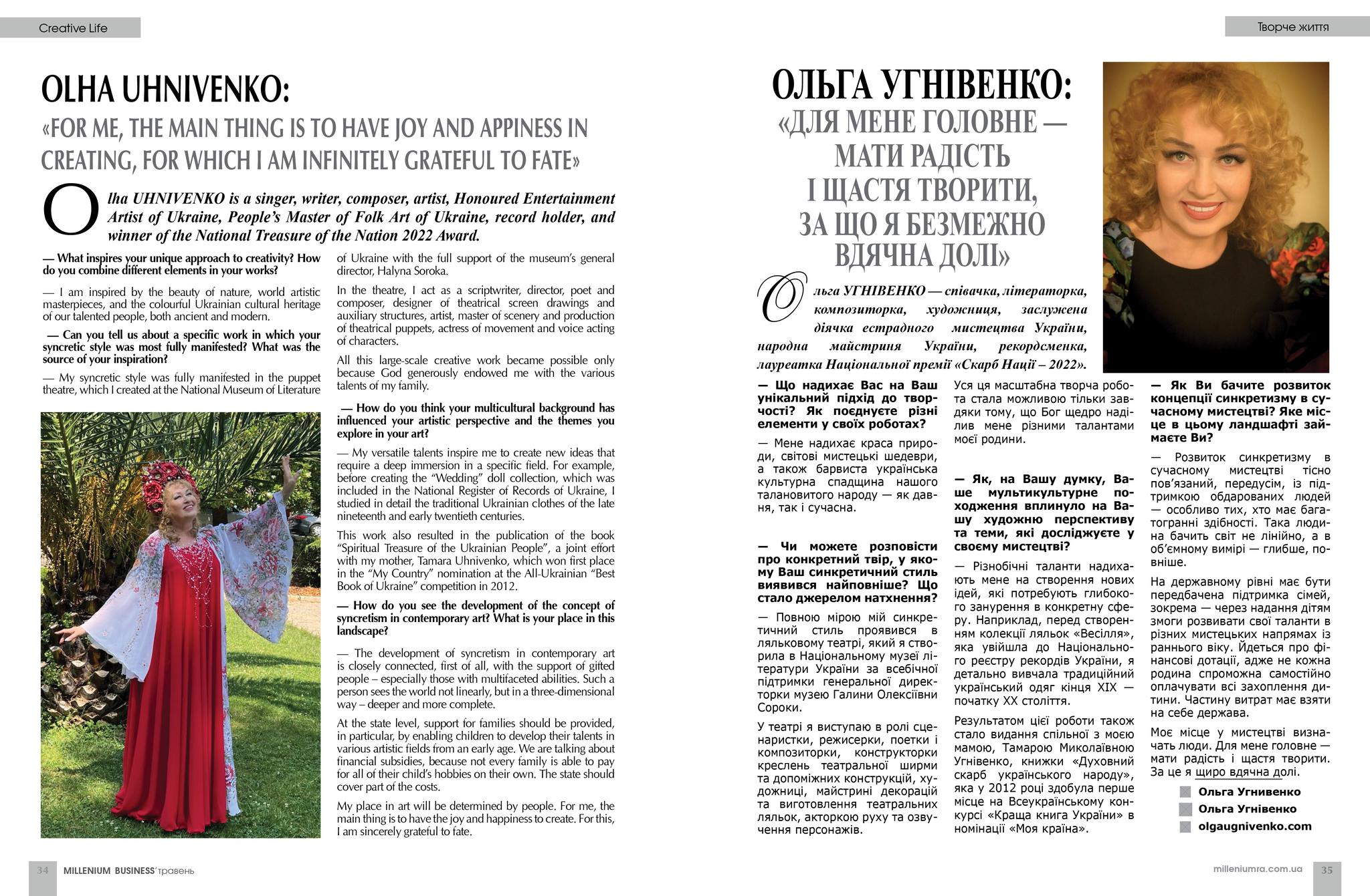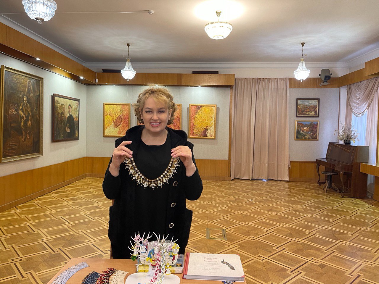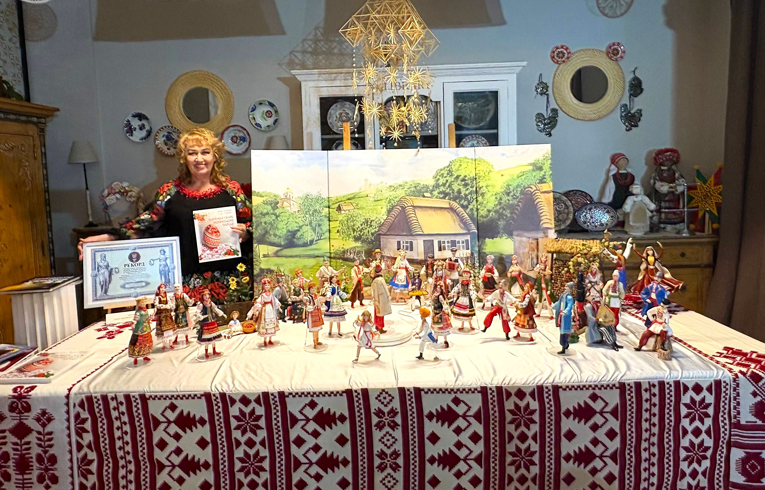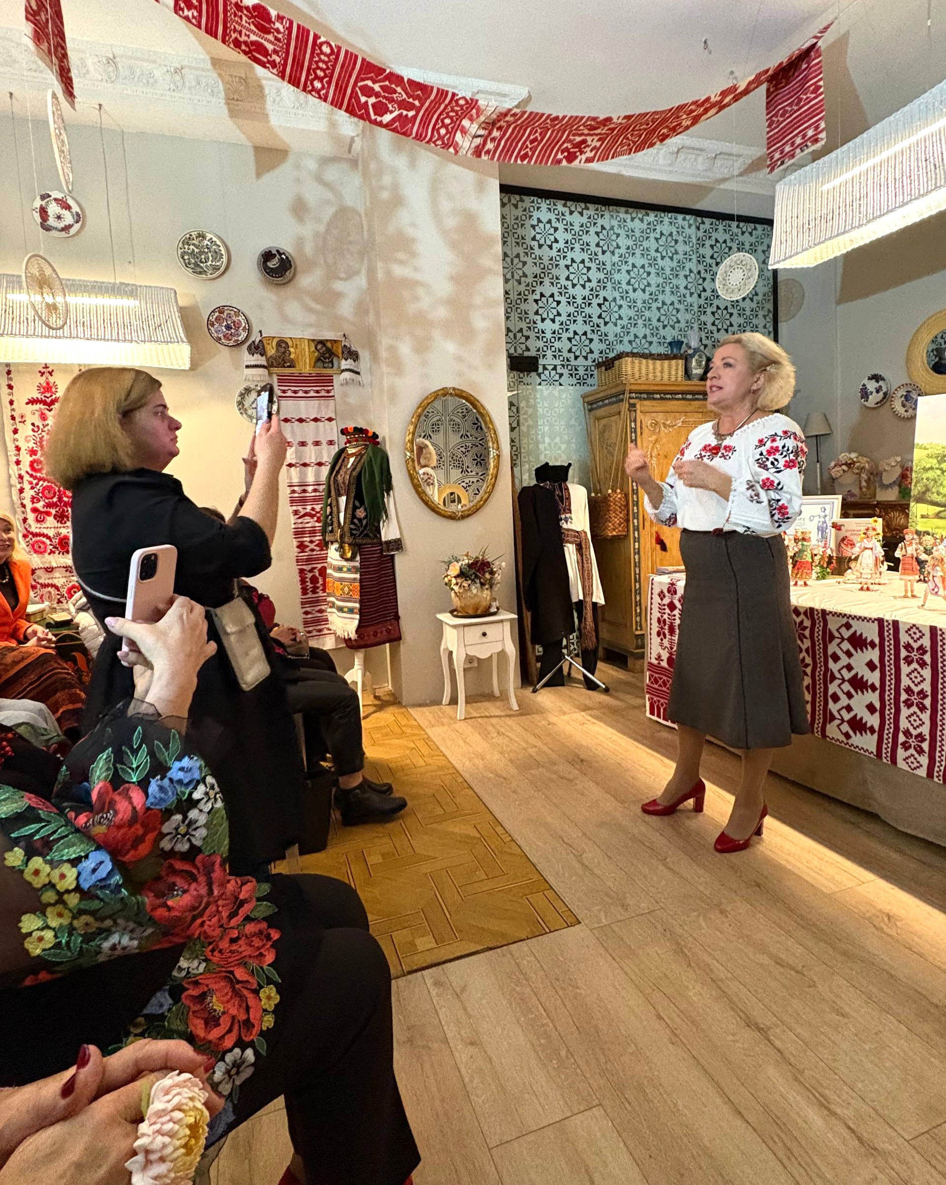 ” У культурно-просвітницькому просторі «Цінності» відкрилась виставка Ольги Угнівенко «ВЕСІЛЛЯ. Душа України в ляльках». Талановита Народна майстриня України, лауреатка Національної премії «Скарб нації – 2022», співачка, художниця, авторка пісень представила доробок своєї унікальної творчості. Заслужена артистка України Тетяна Школьна і народна артистка України Світлана Мирвода проілюстрували колекцію ляльок весільними піснями.”