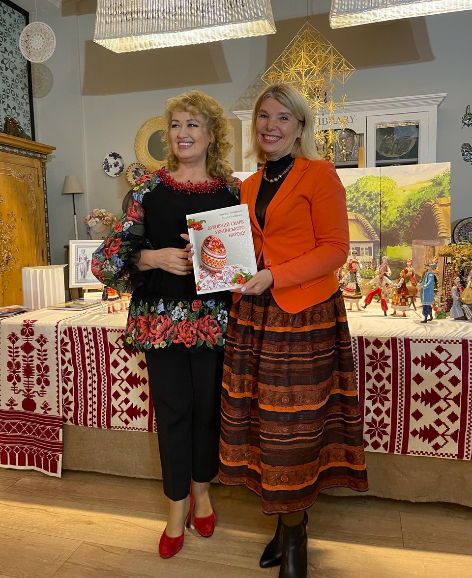 14 травня 2025 року в Етнобібліотеці спільно з Товариством “Україна-Світ” відбулася дуже тепла зустріч з відвідувачами бібліотеки, присвячена Всеукраїнському Дню Вишиванки. Говорили про народні традиції, збереження їх та передання майбутнім поколінням. Співала для присутніх пісні, демонструвала відео з власними виробами, виконаними з елементами традиційних ремесел нашого народу: мальованки – у стилі української вишиванки, писанки та шкрябанки. Розповідала про книгу “Духовний скарб українського народу” авторів Т.Угнівенко та О.Угнівенко (Краща книга Украни – 2012 року) та про ляльковий театр, який створений в Національному музеї літератури України. Повну програму заходу вичерпати, нажаль, не дозволила тривога. Та зустріч пройшла у надзвичайно теплій атмосфері. Вдячна директору Ірині СОКОЛОВІЙ за прекрасну організацію заходу, Голові Секретаріату Аллі КЕНДЗЕРІ за відзнаку та всебічну підтримку, глядачам за бурхливі оплески та приємні слова на адресу моєї творчості. Рада, що змогла надихнути глядачів позитивними емоціями, які так потрібні в нашому сьогоденні. До нових зустрічей!